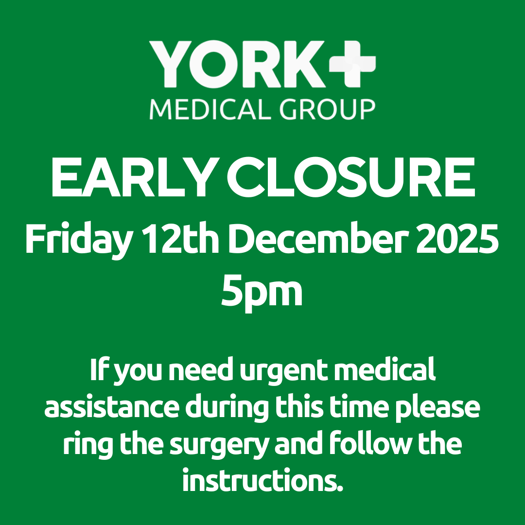 All York Medical Group Surgeries will be closed Friday 12th December 2025 at 5:00 PM